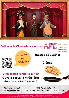 Les AFC vous invitent à venir célébrer la Chandeleur avec un Théâtre de Guignol et des crêpes.
